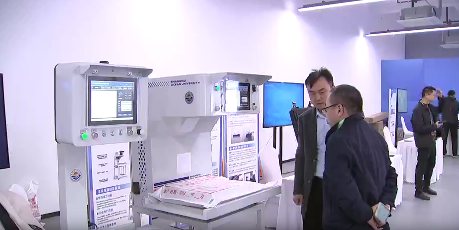 该系统由我国远洋渔业协会与上海海洋大学联合研制,完成全链条可视化监管。现场展现的“文鳐”“金鳞”智能仿生鱼可下潜150米深海观测,电动绞纲机、主动切片机等配备掩盖全工业链。